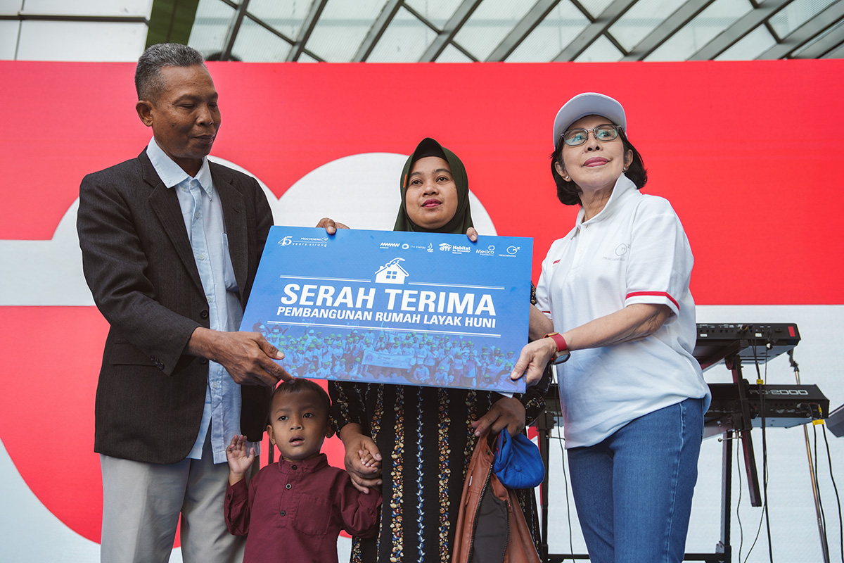 Ibu Yani Panigoro, Komisaris Utama MedcoEnergi dan Bapak Hilmi Panigoro, Presiden Direktur MedcoEnergi menyerahkan rumah layak huni secara simbolik dihadapan para pekerja yang mengikuti rangkaian peringatan Hari Kemerdekaan Indonesia tersebut.